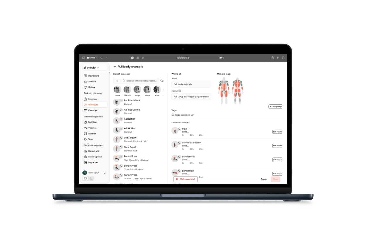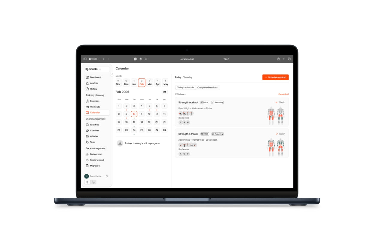 The portal is your main port of call for all of your organisation's administration. Create and schedule workouts, exercises, add athletes, export and analyse data. All web-based and with no login restrictions, meaning you and your coaching team have access from any device.