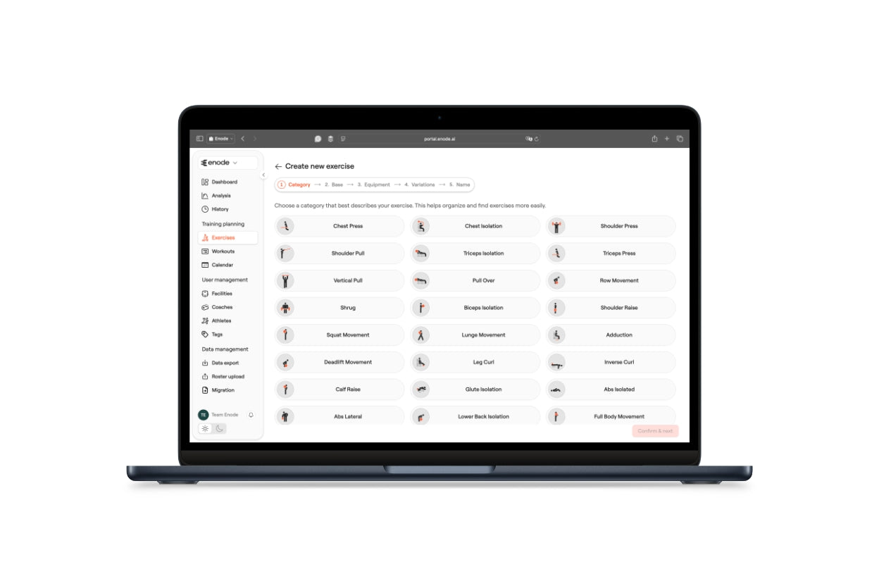 Within the Enode application, there are over 150 exercises pre-defined. You may, however, want to create your own. The portal takes you through an easy step-by-step guide to do so.